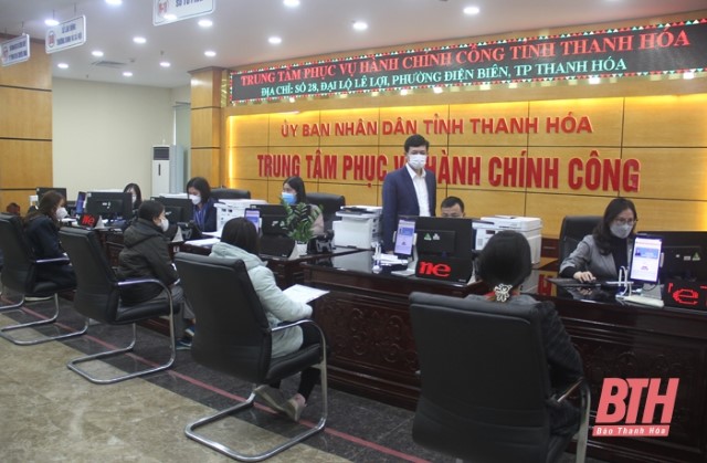Hiện nay, tổng số TTHC được phê duyệt đưa vào thực hiện tại trung tâm là 1.525 thủ tục của 19 ban, sở, ngành, đơn vị. 100% TTHC được trung tâm niêm yết, công khai chính xác, đầy đủ trên trang thông tin điện tử: hcc.thanhhoa.gov.vn và bằng bản giấy đặt tại trụ sở làm việc. Để hiện đại hóa nền hành chính, trung tâm đã đẩy mạnh ứng dụng công nghệ thông tin, giải quyết TTHC trên môi trường điện tử. Hiện nay, tất cả TTHC từ khâu tiếp nhận đến trả kết quả được số hóa xử lý trên môi trường mạng, tăng hiệu quả quản lý thông tin, dữ liệu và thuận tiện cho việc tra cứu nội dung hồ sơ TTHC trong trường hợp cần thiết, giảm tối đa việc ban hành, lưu trữ bản giấy (trừ hồ sơ có nội dung bí mật Nhà nước theo quy định của pháp luật và những hồ sơ chưa thể số hóa). 100% TTHC thực hiện tại trung tâm được thiết lập quy trình điện tử chuẩn ISO trên Hệ thống thông tin một cửa điện tử, giúp việc giải quyết TTHC được thực hiện công khai, minh bạch và xác định được trách nhiệm của từng cán bộ, công chức trong từng khâu, từng việc của quá trình giải quyết TTHC. Kết quả giải quyết TTHC được trung tâm thông báo qua tin nhắn điện thoại (SMS) và thư điện tử để TCCD chủ động trong việc đến nhận kết quả. Năm 2021, trung tâm tiếp tục phối hợp với các đơn vị liên quan nâng cấp, hoàn thiện các tính năng trên Cổng dịch vụ công và Hệ thống thông tin một cửa điện tử của tỉnh; thu phí, lệ phí bằng biên lai điện tử trên Hệ thống thông tin một cửa điện tử; thanh toán tiền phí, lệ phí trực tuyến qua hệ thống thanh toán trực tuyến VNPT PAY; trang bị công cụ ký điện tử phục vụ TCCD kịp thời.
